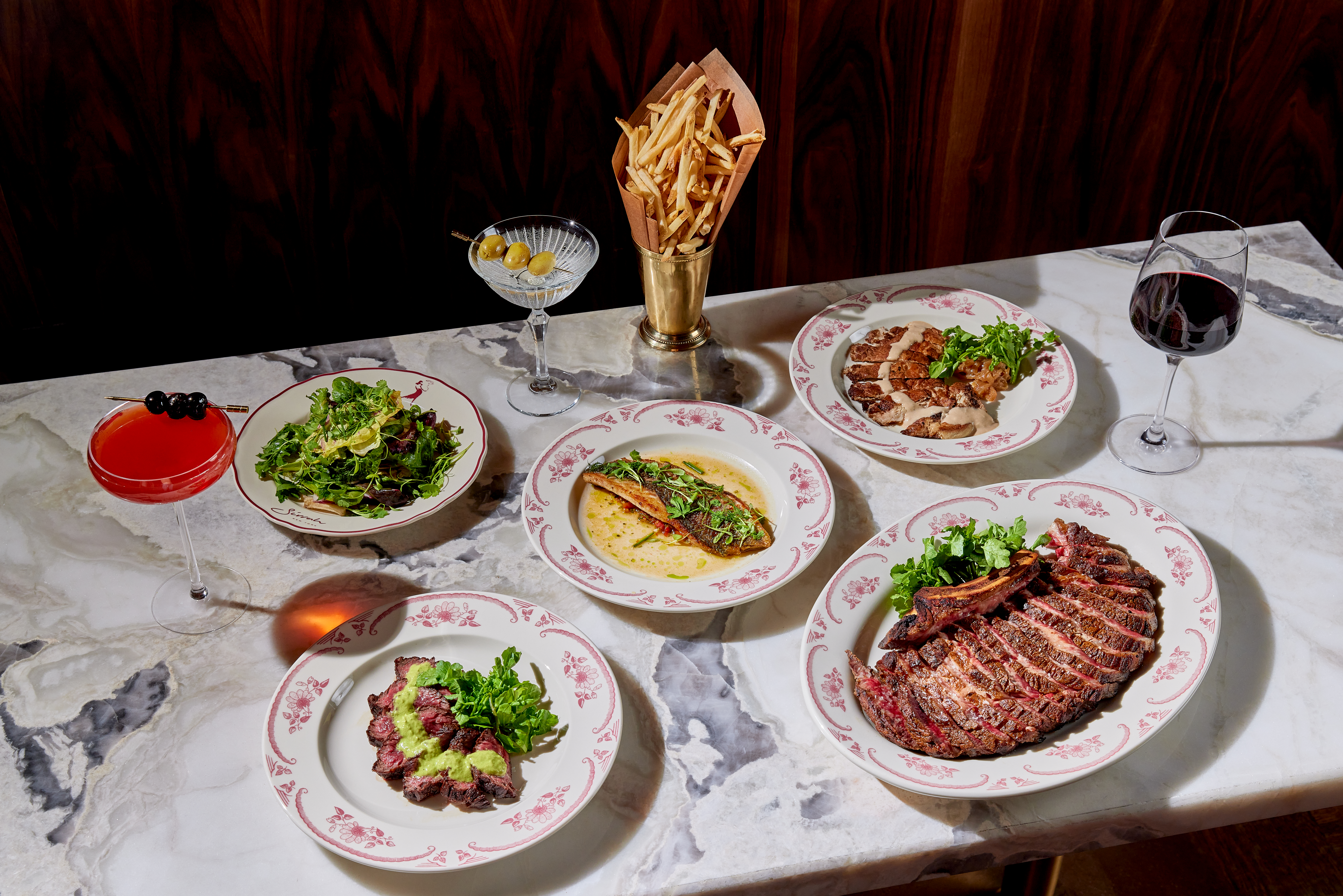 The restaurant brings a contemporary interpretation of French cuisine to a dramatic, high-energy setting. The prix-fixe menu highlights classic flavors executed with confidence, including a standout hanger steak served alongside crisp frites that arrive seemingly without end.